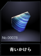 No.00078 青いかけら![]() ![]() | 蒼結晶と同じ場所で入手可能 | |