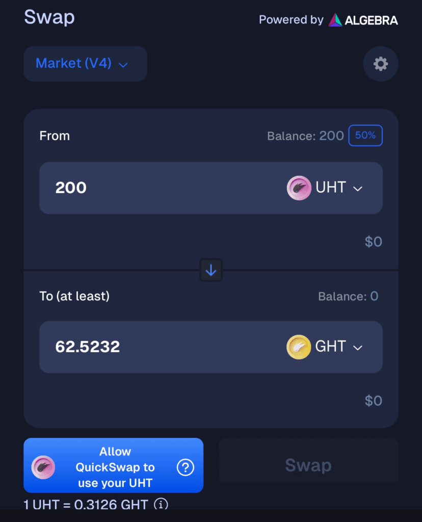 ウォレットを接続し、UHTをGHTにスワップできれば完了です。