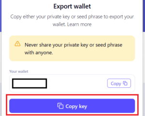 ⑥Copy key を選択すると秘密鍵がコピーされます。